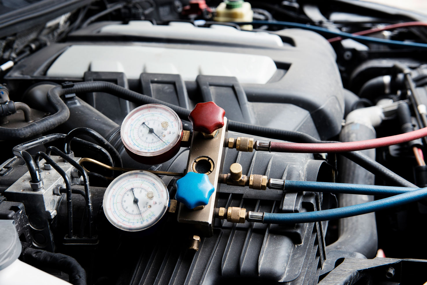 Remplissage des quantités préconisées d'huile + du gaz dans le circuit de climatisation